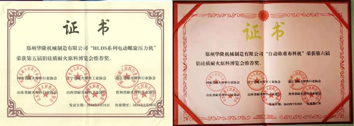 很榮幸,繼華隆數控壓力機后,華隆“自動稱重布料機”再次榮獲第六屆鋁硅質耐火原料博覽會推薦獎。感謝各位專家和領導的認可,華隆將不負眾望,繼續(xù)為耐材行業(yè)的發(fā)展而努力。